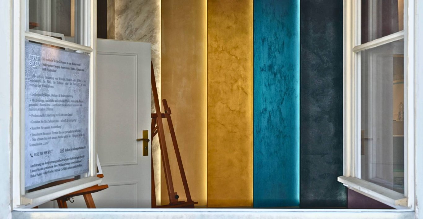 Bei Dekor Salon Potsdam verwandeln wir Räume in ganz Deutschland und Europa in inspirierende und individuelle Umgebungen. Unsere Leidenschaft für Raumgestaltung, Innenarchitektur und Wandgestaltung macht uns zum perfekten Partner für Ihre Gestaltungsprojekte. Ob für Ihr Zuhause, Ihr Büro oder gewerbliche Räume – wir schaffen Räume, die Ästhetik und Funktionalität harmonisch vereinen.